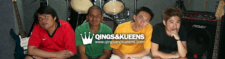 Qings & Kueens .: Click To Enter :. Qings & Kueens was officially formed in the forth quarter of 2001. Vima (vocals/guitars) and Paul (guitars) met way back in 1995 in school when they where classmates. They only discovered their love for music a year later and met a friend, Kevin (bass) who stayed in their neighborhood and played music as well. The three would jam weekly at a local playground, playing and learning songs that were popular on radio. Progressing in their various individual musical taste and style, the three played in several bands throughout their high school days. It was in mid-2001 that Vima and Paul decided to take their hobby to the next level and got Kevin to play bass with them. Introduced by James (Fallen Leaves), they met Jerry (drums) and they started to jam and make music. Together, they improved musically, starting out with playing simple tunes to more diverse arrangements. Fusing the jazz-influenced rhythm section of Kevin and Jerry and the more rock approach of Vima and Paul, Qings & Kueens’ music emphasizes on the melodic content and musical arrangement. The four has not stopped playing since they met and has made several performances at Acoustic Jams (organized by Peter Hassan), BSC and Soul Café. They also managed to get a third placing in the Asian Beat 2002 band competition organized by Yamaha. As a fairly new band, they will continue to play their brand of melodic-rock and hope to contribute to the local music industry in Malaysia. |