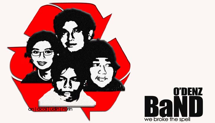 Odenz Band .: Click To Enter :. ::KENALI KAMI O'DENZ BAND:: Dari kombinasi rock dan sedikit blues dan pop, munculnya gaya muzik Kami sendiri yang tulen dan unik. Kumpulan 3 pemuda dan seorang pemudi ini bergabung pada permulaan 2004 atas semangat AN yang merupakan pelajar kolej IIM-UNIKL telah menubuhkan sebuah kumpulan muzik demi memperkenalkan tahap baru kepada industri muzik tempatan. Untuk tujuan demikian, AN telah menghubungi semua kenalannye rapatnye yang tahu untuk bermain muzik dan hanya 4 org yang berminat utk ikut sertanya iaitu udin(bassist), Acai(drummer), nurin(vokalis). Berdasarkan dorongan muzik, 4 rakan seperahu ini telah melahirkan kata sepakat untuk mengeluarkan bahan karya yang mengagumkan. cehwah. Nama O'denz band telah diperolehi secara tak sengaja semasa udin membuat tempahan studio utk jamming. Akhirnye lekat menjadi nama utk band ini.Ini Menunjukkan satu kelainan dalam nama band. :).. Ditubuhkan dlm penghujung tahun 2004. Hayatilah lagu2 kami di antaranya buat masa ini :- 1. Hati Emas - (tribute to M.Nasir) 2. Keluang Man - (tribute to Krisya) 3. I luv i miss new songs in coming... Enjoy our music. thanks for supporting us.. =) |