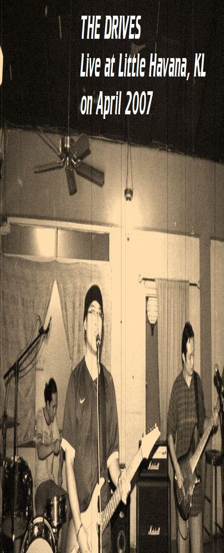 The Drives .: Click To Enter :. Click to the picture above to listen to our musics........ The Drives The Drives are : Rizal ( vox + guitar ) Ricky ( Bass ) Bobby ( Drum ) The Drives The Drives was formed in 2003. Before using the name The Drives the band use the name The Bandwagons. It started when Rizal and Ricky decided to form a band after a long absentees in the underground scene in Kuching. Rizal was then with the band call Radish Fan and Ricky was ex-Nice Stupid Playground Guitarist. The two have known each other for a long time when both of them were very active in the underground scene in Kuching. After having a material to play they decided to recruit Nellfee from Radish Fan and Bobby from Groovers Lump. They started to jamm and produce few songs and manage to record it as their first demo. Rizal take on the role as the vocalist & guitar, Nellfee on lead guitar, Bobby on drum, and Ricky on bass. But to their disappointment the demo never been released as it does not what they wanted it to be. The demo was a failure. After a short period of time Nellfee decided to join Nice Stupid Playground. That leave behind Rizal, Ricky and Bobby to continue the band. At this time that they decided to change the band name to The Drives. The departure of Nellfee has given the opportunity for the guys to change the direction of their music but still maintain the Brit sounds. They call their music as Rock n roll Noise with blended of Brit sound or in a simple way Brit Rock. They immediately goes to studio and record their songs at Streamline Studio own by Morgan Grimsam. There they recorded 7 songs. The songs are much different from first demo. In this second demo much of experimental has been done to make the songs more suitable to their tastes. All the songs are written by Rizal. It was produce by Morgan and the title of the demo is 'Waiting For You'. For now The Drives are waiting for anybody to invite them to play in gigs. Those who wish to know and want some information of the band can email us at rickythedrives@yahoo.com or usmara78@yahoo.com or just call Rizal at 0198863450. Band : THE DRIVES Demo : WAITING FOR YOU Producer : MORGAN GRIMSAM Mixing : MORGAN & RIZAL Studio : STREAMLINE STUDIO Concept : BRIT ROCK Band members : RIZAL ( VOCAL & GUITAR ), BOBBY ( DRUM ), RICKY ( BASS ) Songs : 1. waiting for you 2. lets talk in the morning 3. got to feel it 4. stay at high 5. robot maker 6. other hands 7. shoot |