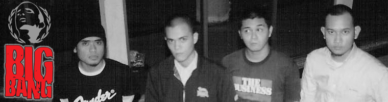 Big Bang .: Click To Enter :. "And I thought we were wild" - Animal (Anti Nowhere League) "If Punk is real and Oi! is reality then Big Bang would be the impossible" - Garry Bushell (Sounds journalist) "I spent my entire political life trying to create a united Asia of peace and harmony only for Big Bang to wreck that dream with their noises" - Abdullah Badawi "For the record I didn't take my clothes off for Iqbal" - Jennifer Lopez "I've never thought that there would be such a great Oi!/Streetrock bands from Malaysia. With their boisterous hard-riffed guitar works and streetwise lyrics, I'm pretty damn sure that they'll make their way in the international street music scene in just a couple of months. Well you were talking about Roots & Boots right?" - Mark Brennan (Captain Oi! Records) "They are a disgrace for Pahang" - DYMM Sultan Haji Ahmad Shah "We would like to thank Big Bang's Iqbal for helping our company achieve record sales" - Steve Smith (Playgirl) "They are trying to conquer the world with their Weapon Of Minds Destruction that can be found somewhere in their wicked vocal jingles and loud guitar tunes" - George W Bush Enough of the gobbledygook comments. Here's how the factual story goes. Hailed from the East Coast scene, the idea of forming a band formerly comes from 2 siblings (Iqbal & Sham) as early as 1998. However only at the end of 1999 they could managed to find those whore interested to be in their band. Influenced by the local Oi!/Streetpunk heroes such as The Stomper (RIP?) & Revolt Squad which most of the band boys are their own mates, they've decided to join the force to take Oi!/Streetpunk music back to the street of Kuantan again. Originally known as The Outrage, several months later they've revolutionize the bands name to Big Bang after they've noticed that there's an oversea Death Metal bands by the same name. On the premature years, they've been listening to countless 77's Punk and early 80's British Oi!/Streetrock noise and bollocks which unintentionally influenced them to sounds like one. But after years and years of making music as a piece of their fucked-up life, they started to listen to various music genres ranging from Oi! and Punk Rock tunes to present noise of Hardcore, Rock & Roll, Ska, Metal, Psychobilly, and more. Undoubtedly, listening to assorted music genres makes them slowly changing their perception about music and on the same time makes them on the road to find their own Oi!/Streetpunk identity . The line-ups have changed more than once. They started as a 4-piece band with Iqbal, Sham, Kong & Johan. Months afterward, Johan decide to call it a day and leave the rest of the bands. Then Hazry join the bands somewhere around 2001 replacing Johans place. Sadly through, months later Kong left the band unnoticed leaving Sham, Iqbal & Hazry only. But they know its not the time to call it a day yet. They keep Oi!in on in nearly every street music gigs/shows around Kuantan. Regularly, they invite Nizam & Epi (Subterfuge, Pin Head, Vicious Brown Kids) to help them smashing the stage. But, things arent going as they all planned. A few months ago Hazry has left them without any prior notice. In-out, in-out they go but things arent gonna deteriorating their unyielding passion on music. Their latest line-ups on 2004 are Iqbal on vocal (and currently he's trying to play rhythm guitar while shitting around; thou he looks dumb enough by doing that), Sham on Drums, Nizam on Lead Guitar, and Epi on Bass. (notice: presently, we're still looking for a bassist as Epi is only a sessionist). They've played around 10-15 gigs and incalculable jamming sessions/mini gigs. Their first gigs was held somewhere on 2000 at Scandals Discotheque. Although they've been "Oi!"in around for quite a long time, they haven't release any records yet due to some economic and normal life tribulations. But surprisingly, they have the guts to play out their own songs like Guns for Palestine on their shows. So get up, tight up your boots and gears, Big Bang is here and they really gonna Oi! your arse up!! |