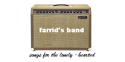 farrid's band .: Click To Enter :. started back in 1996 when farrid first wrote a song on his own. then suddenly became more and more bla bla bla. with his band, the perfumed flood stickers and getting a lot of good reviews on ROTTW (d.i.y and Expose) then suddenly after a few years he discover that he wanted to go with his OWN band, farrid's band. check out his songs and listen it properly. sit tight and don't lose your pants! |