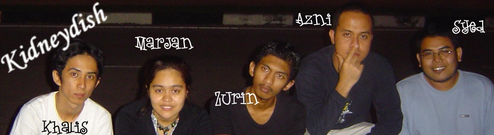 Kidneydish .: Click To Enter :. Kidneydish... they are from Armpunk..!! They have recruited a new keyboardist (Tanny)... They used to be called an indie pop band.. But now they sounded more heavier... more darker... melodically depressed.. They have already recorded 2 of their songs and hoping to record some new songs... Welcoming all dudes out there to see them play live... KD contact info :- email : lukidney_dish@hotmail.com Khalis : 013-6680211 Zurin : 012-9263896 |
