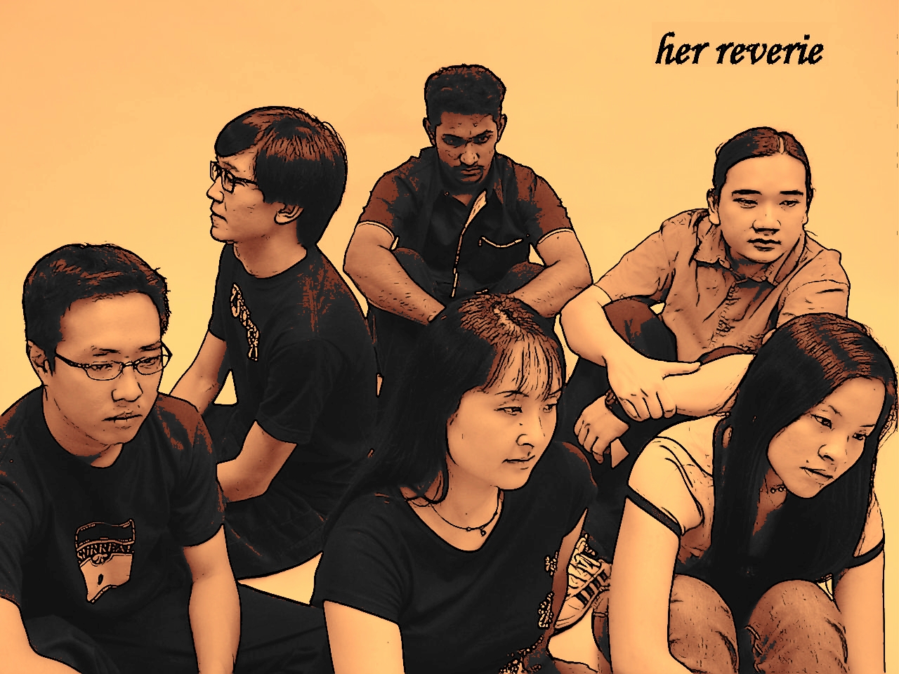 her reverie .: Click To Enter :. her reverie is a bunch of mateys who grew up together singing kids choruses and running around half naked. her reverie is escapism from mundane work, releasing heartaches and hormone driven frustrations through saccharine filled 3 minute pop ditties. her reverie is the secret life story of 6 mates exposed in the truest form of music. it is finding the beauty in rhetorical sorrows. |