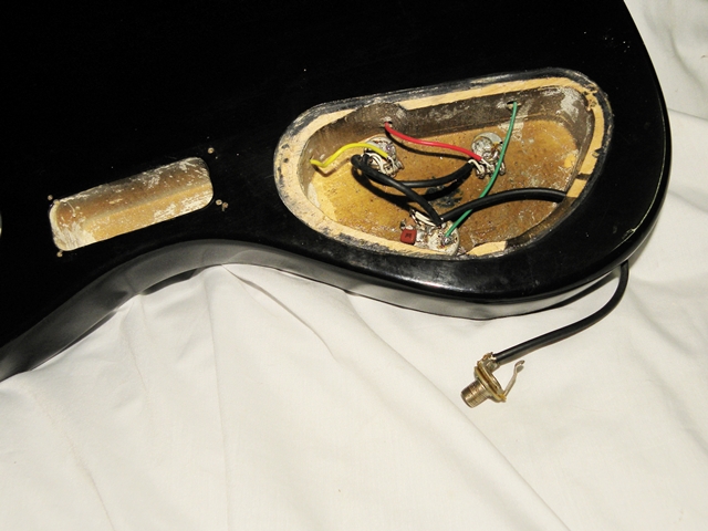 Here's a 'Crafted in China' Washburn XB125. It originally had a master volume, master tone and toggle switch. However, the toggle switch died about 2 years ago. As no suitable spare parts were available here (believe it or not) and the owner needed it pronto; I removed the toggle switch and replaced it with a DiMarzio 500K pot that was in my spare parts bin. So, what you are looking at now is a rush job with a neck pup volume, bridge pup volume and master tone (DiMarzio 500K).